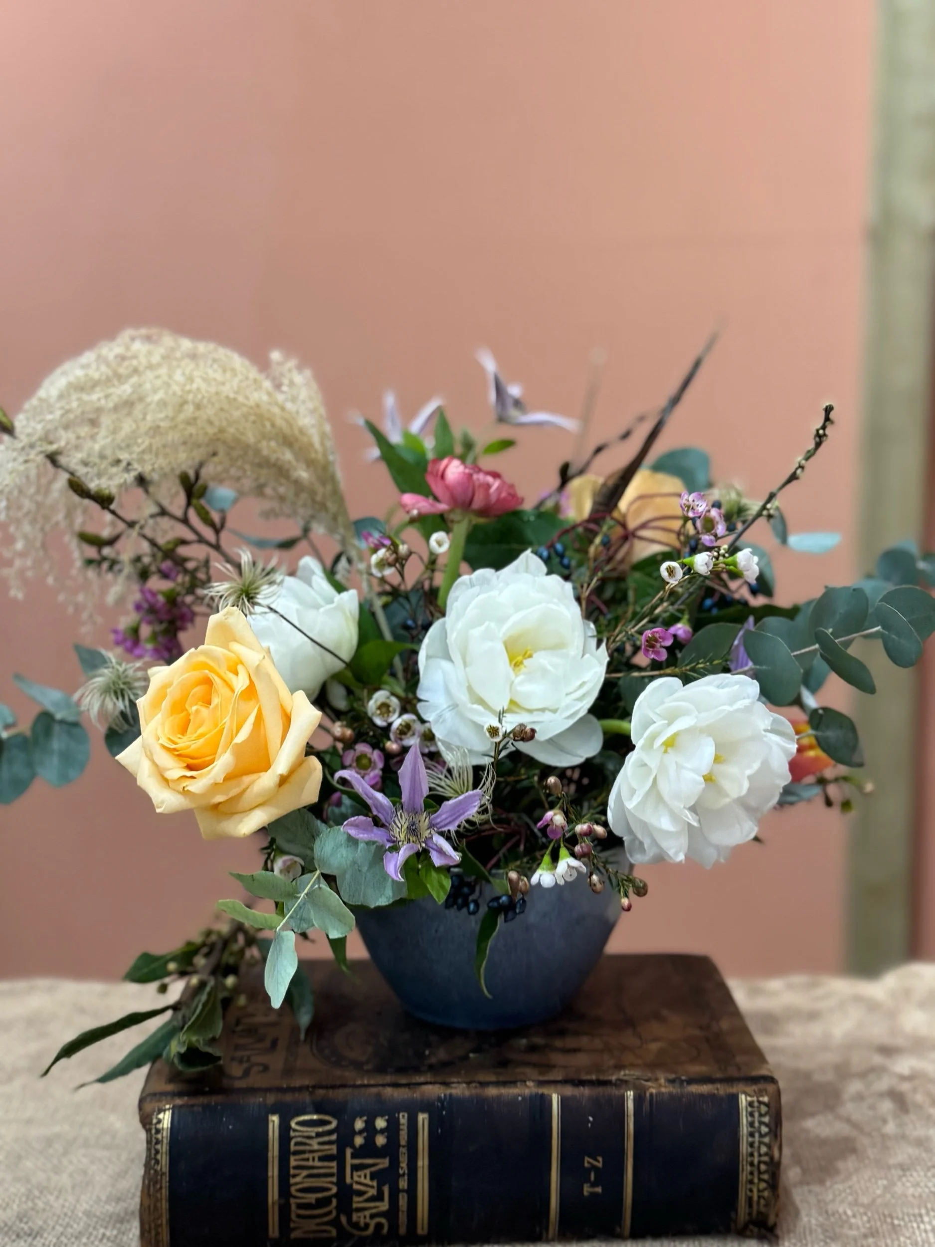 I will be providing the fresh Spring flowers, foliage and container for you to keep … many of the flowers and foliage will be grown in our flower farm in our orchard and garden.